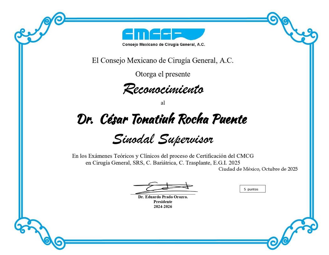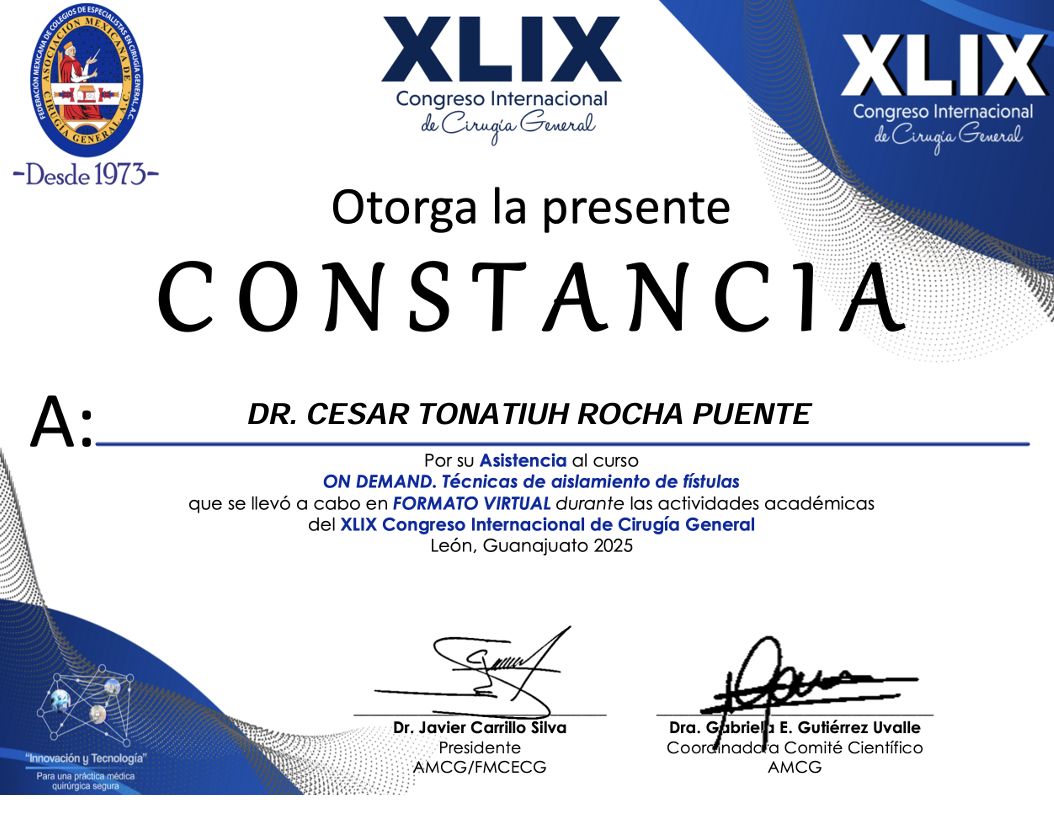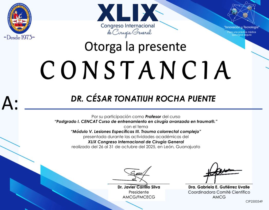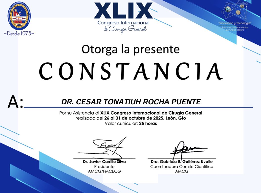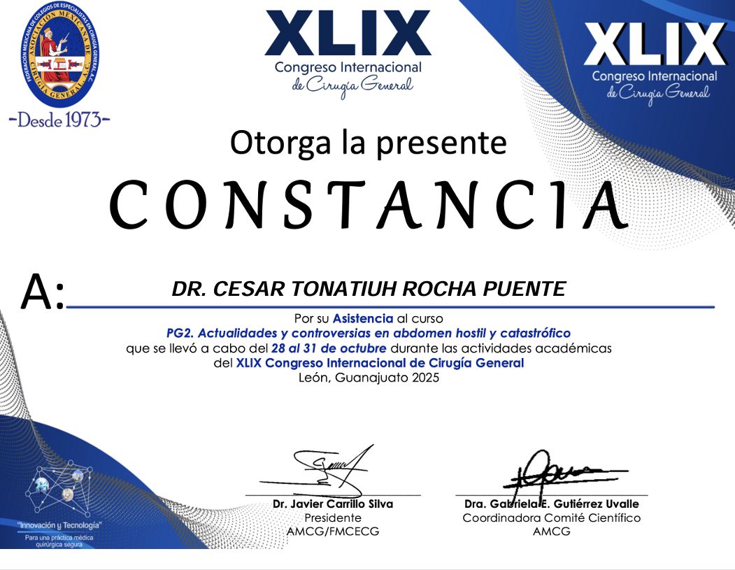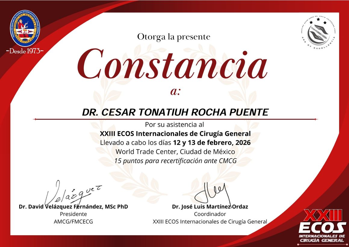 Realicé la especialidad en Cirugía General en el Hospital Central Militar en la Ciudad de México, que es un hospital de tercer nivel de atención, el cual ha sido formador de especialistas con renombre internacional dada la calidad en sus procesos de atención médica, que exigen una rigurosa actualización y desempeño apegado a estándares internacionales de la práctica médica.