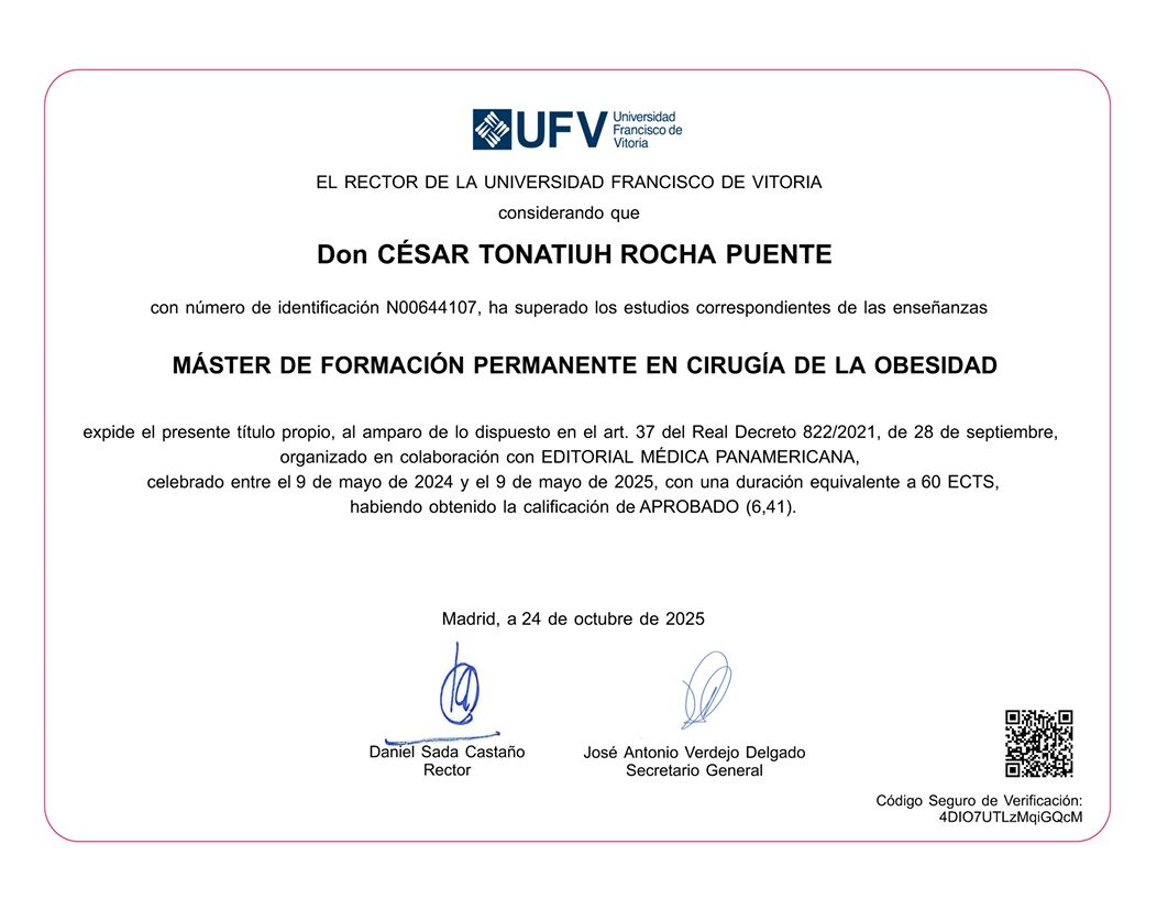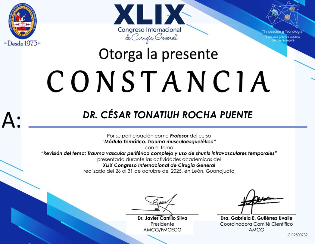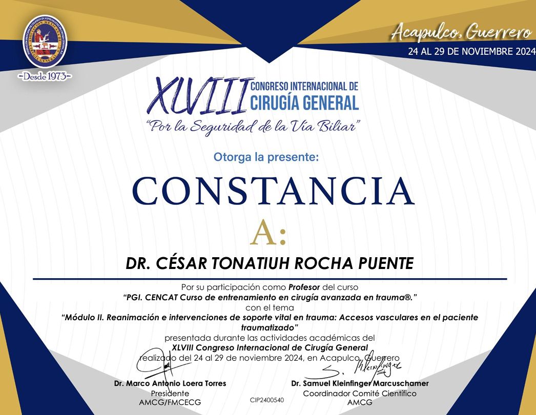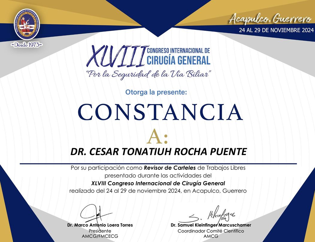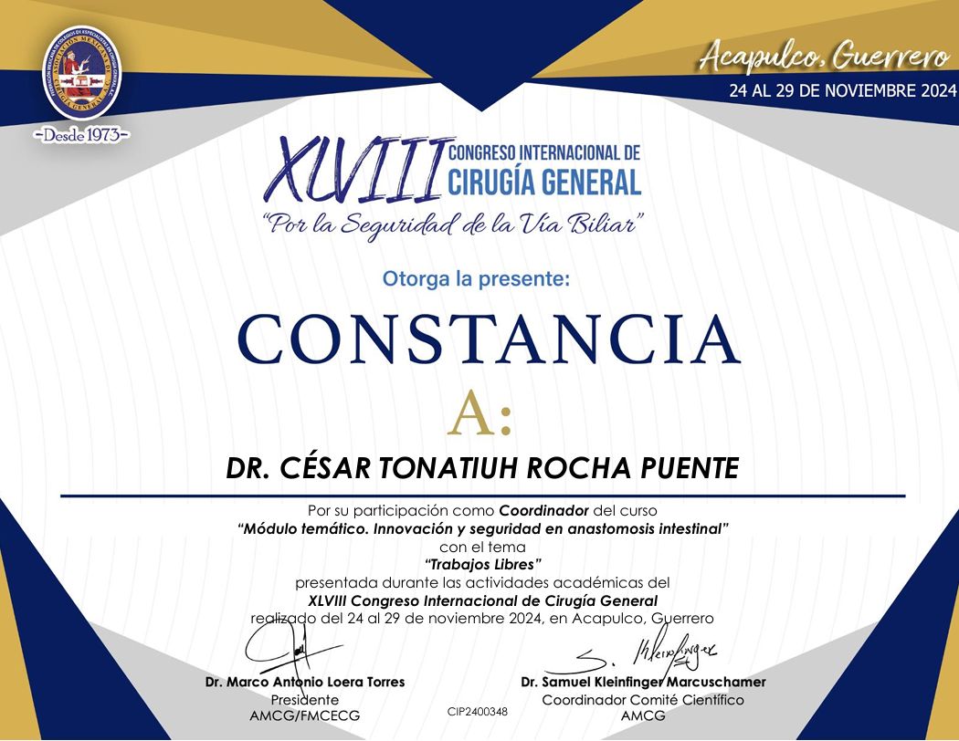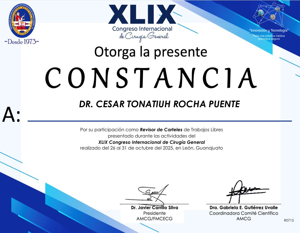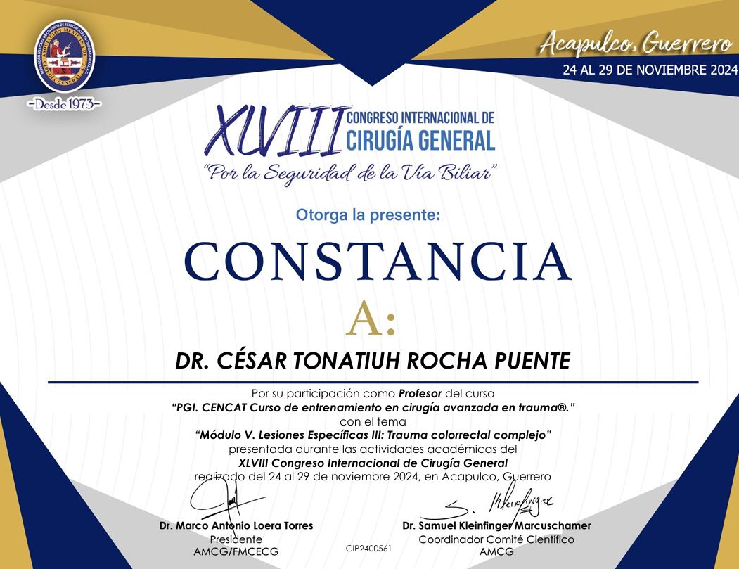 Realicé la especialidad en Cirugía General en el Hospital Central Militar en la Ciudad de México, que es un hospital de tercer nivel de atención, el cual ha sido formador de especialistas con renombre internacional dada la calidad en sus procesos de atención médica, que exigen una rigurosa actualización y desempeño apegado a estándares internacionales de la práctica médica.