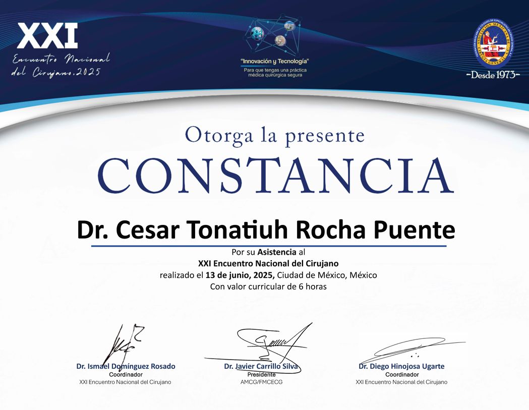 Durante mi ejercicio profesional, ha sido mi interés el mantenerme actualizado en todas las áreas que abarca la Cirugía General, asistiendo a cursos, congresos, adiestramientos y diplomados tanto nacionales como en el extranjero los cuales me dan los elementos necesarios para brindarle el mejor tratamiento posible.
